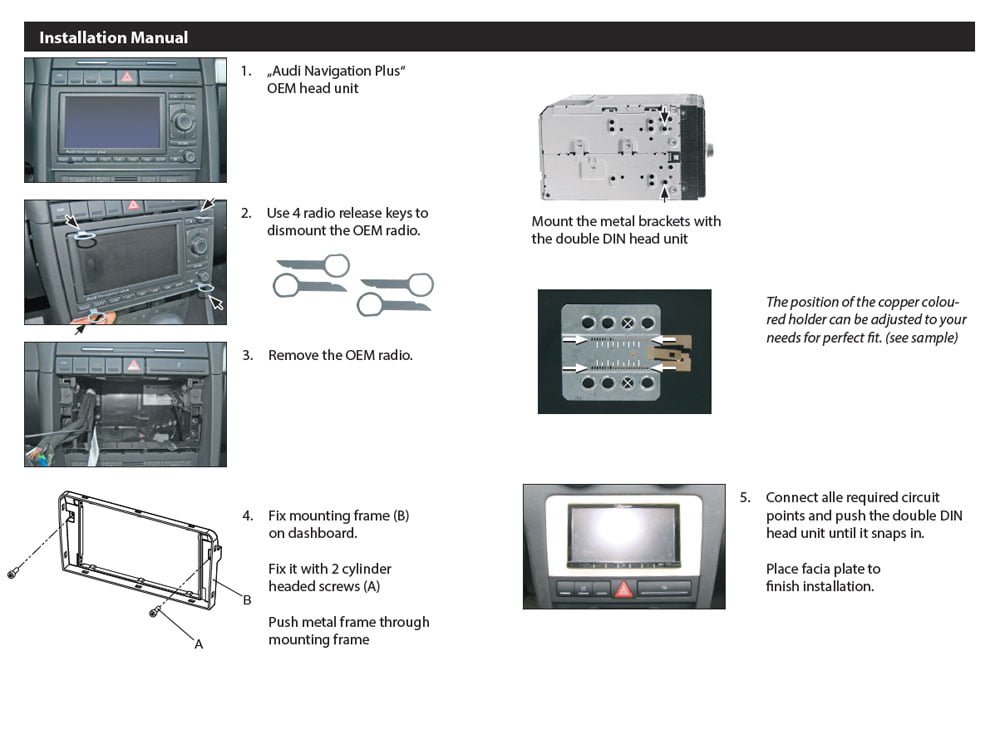Kunnollinen 2DIN soitinadapteri Audi A3:seen vuodesta 2003 eteenpäin.