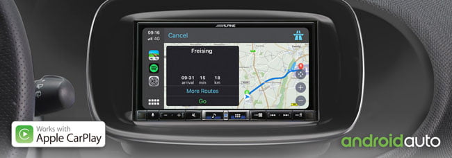 Online-navigointimahdollisuus Apple CarPlay ja Android Auto yhteensopivalla puhelimella