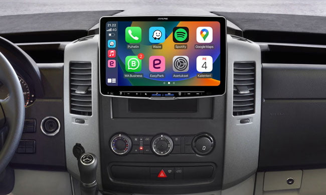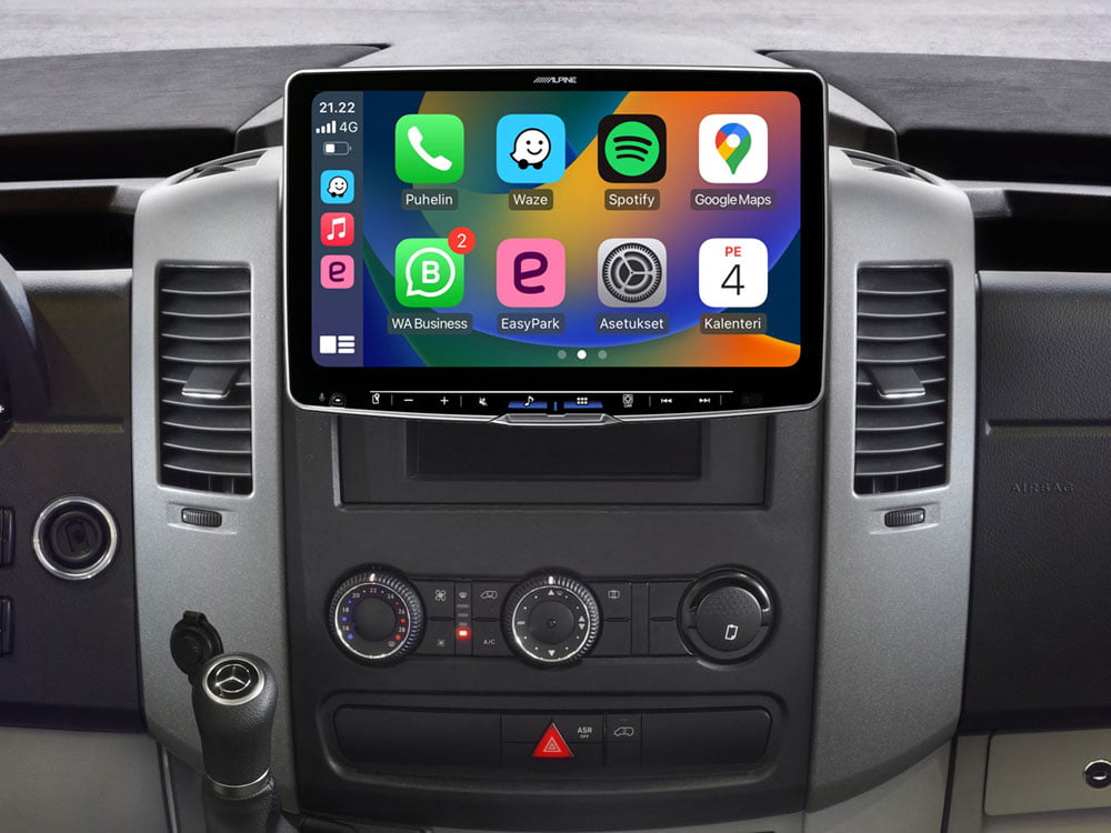 Kun haluat MB Sprinteriin tai VW Crafteriin mahdollisimman suuren näytön on 11″ näytöllä varustettu Alpine iLX-F115S906 kuin tehty sinulle. Alpine iLX-F115S906 istuu Sprinterin tai Crafterin kojelautaan täydellisesti ja soitin tukee myös auton alkuperäisiä rattipainikkeita ja tuo autoon kaikki tämän päivän multimediaominaisuudet.