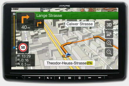 Alpine INE-F904D -mallin iGo Primo NextGen navigointi käyttää TomTomin karttoja ja tietokanta kattaa 46 Euroopan maan kartat sekä satojatuhansia POI-kohteita, kuten huoltoasemia, ravintoloita, ostoskeskuksia ym. Kaistaopastus helpottaa ryhmittymistä ja navigoinnin seuraaminen suurelta näytöltä on erittäin miellyttävää.