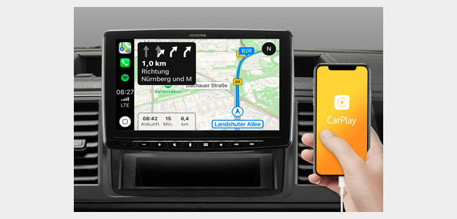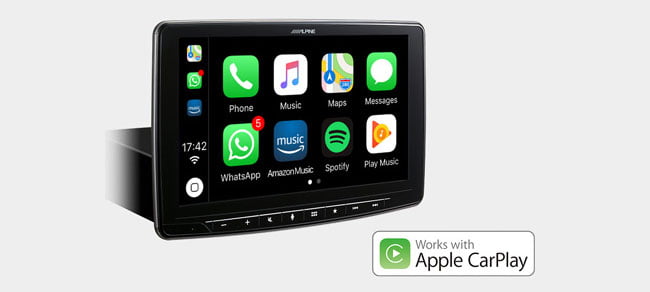 iPhone voidaan liittää Lightning-kaapelilla INE-F904D -soittimeen jolloin saadaan käyttöön Apple CarPlay:n kaikki ominaisuudet. Soittimella voi käyttää Applen navigointia tai käyttää muutamia suosittuja sovelluksia. Suuri osa sovelluksista on myös Sirin kanssa käytettäviä, joten kuski voi pitää katseen tiessä. Apple CarPlay löytyy iPhone 5 ja sitä uudemmista puhelimista.