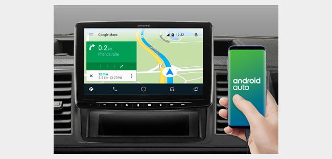 Android Auto tarjoaa yksinkertaisen ja selkeän käyttöliittymän ja tuo Alpine INE-F904D:n näytölle tärkeimmät informaatiot, kun yhdistää Android puhelimen USB-kaapelilla soittimeen.