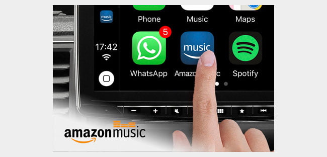 Amazon Music on Android Autolle sekä Apple CarPlay:lle tehty sovellus, joka tarjoaa Amazon Music Prime -käyttäjille pääsyn miljooniin kappaleisiin ja näiden hallinnan 9-tuuman kosketusnäytön kautta.