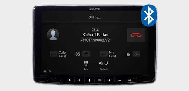 Bluetooth mahdollistaa handsfree-puhelut sekä musiikin langattoman striimauksen puhelimesta. Saat siis esimerkiksi Spotifyn ja kaikki mahdolliset nettiradiot toistettua Alpinen kautta.