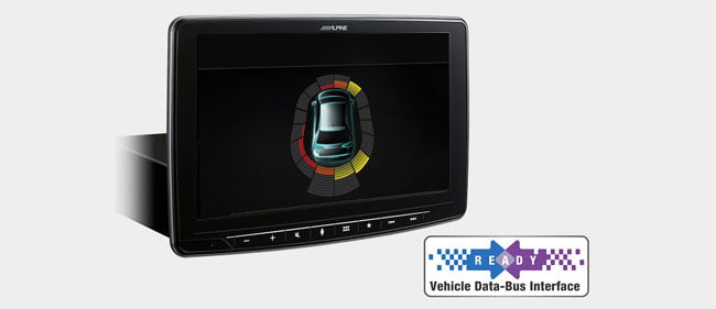 Alpine INE-F904D on yhteensopiva Alpine APF-X -adapterien kanssa joiden avulla saa tuotua peruutustutkan ja ilmastoinnin tiedot Alpinen näytölle vastaavasti kuin ne näkyvät auton alkuperäisen soittimen näytöllä.