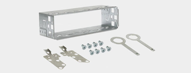 Alpine INE-F904D:n mukana toimitetaan 1DIN asennuskehys, joka on asennettavissa 1DIN paikalla oleviin autoihin. Varmista, että laite on asennettu erittäin tukevasti, sillä soittimen painon vuoksi asennukseen pitää kiinnittää erityistä huomiota!