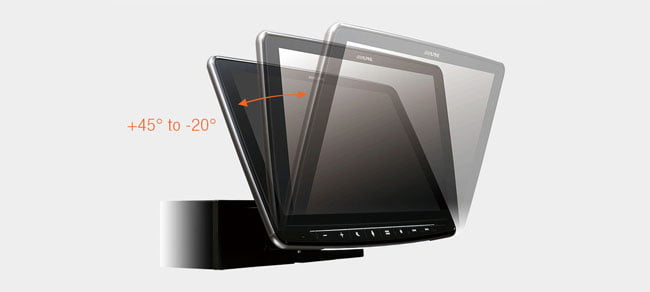 Näytön kulmaa pystyy säätämään +45 asteesta -20 asteeseen, joka mahdollistaa asentamisen erittäin moneen ajoneuvoon. Säätämisen jälkeen näyttö lukitaan keskusyksikköön, joka takaa näytön tukevan istumisen paikallaan, eikä näyttö notku tai vääntyile kun painaa kosketusnäytön painikkeita.