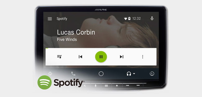 Mikäli käytössä on Spotify niin sitä voi käyttää myös soittimesta käsin. Spotify on käytettävissä Apple CarPlay:n sekä Android Auto:n kautta. 9″ näytön kautta sovelluksen käyttö on todella miellyttävää.
