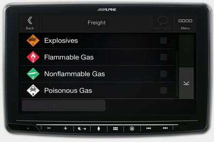 Mikäli lastina on esimerkiksi syttyviä tai myrkyllisiä kaasuja, nämäkin otetaan huomioon reittien laskennassa. Navigointi välttää tässä tapauksessa esimerkiksi kaupunkien keskustoja tai suojelualueita, jotka eivät salli tällaista rahtiliikennettä.