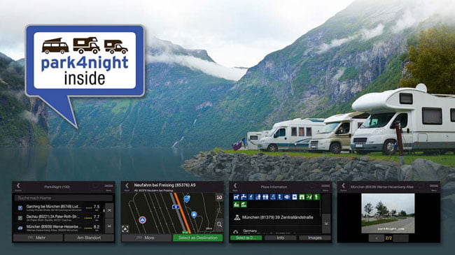 Kaikista kohteista on selkeät kuvakkeet sekä esimerkiksi aukioloajat ja leiriytymispaikan mahdolliset palvelut (esim. WiFi, pesumahdollisuus, tankkien tyhjennykset ym.) ja näet etäisyyden kohteeseen, käyttäjien arvostelut ja jopa valokuvat kohteesta. Voit soittaa kohteeseen tai aloittaa navigoinnin vain yhdellä napin painalluksella. Tiedot päivitetään vuosittain ja päivitykset kattavat kohteiden lisäksi myös kaikkien arvostelujen ja kommenttien päivitykset. park4night on valmiiksi asennettuna 11/2020 jälkeen hankituissa Alpine INE-F904DC soittimissa ja vanhempiin Alpine INE-F904DC -soittimiin se on ostettavissa jälkikäteen.