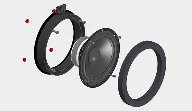 6.5″ midbasso on erittäin hyvin kontrollinsa pitävä ja tuo napakan midbassotoiston autoon. Perinteisten muovisten asennusrenkaiden sijaan Alpinen mukana toimitetaan tukevat metallirenkaat. Tämä on huomattavasti muovirengasta tukevampi tapa asentaa, sillä metallirengas muun muassa vähentää oven värähtelyjä, joka taas parantaa bassotoistoa. Kaiuttimessa on mukana silikoninen tiivisterengas.