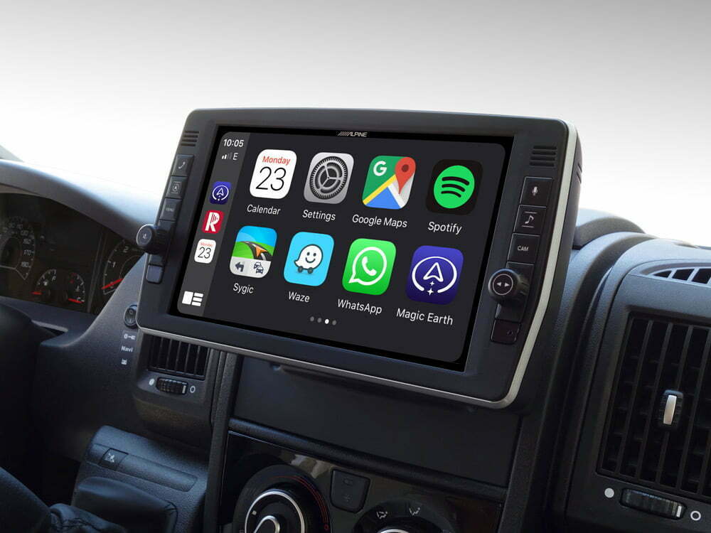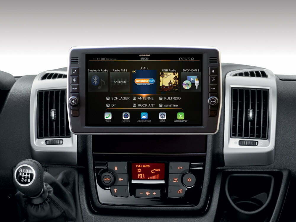 | RDS-radiolla, navigoinnilla ja 9″ kapasitiivisella kosketusnäytöllä varustettu ohjelmalähde Sisäänrakennettu vahvistin neljälle kaiuttimelle (etu + taka) Yhteensopiva lisävarusteena myytävän Alpine DVE-5300 DVD/CD-soittimen kanssa |