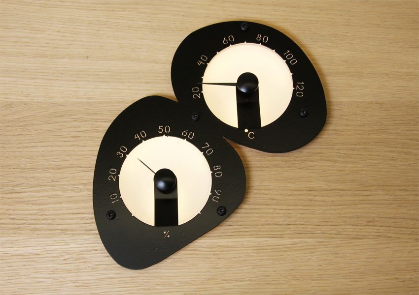Kivi on yhdistetty lämpö- ja kosteusmittari saunaan. Kiven luonnonmukainen muoto jäljittelee meren rantaan huuhtomia kiviä. Saunan lämpömittarissa on hiottu mustaksi maalattu rst-kehys ja satiinipintainen polykarbonaatti tausta, jonka lävitse mittari valaistuu tasaisesti. Valaisuun tarvitaan joko 2 lediä tai 2 kpl 2 – 4 mm kuitua.