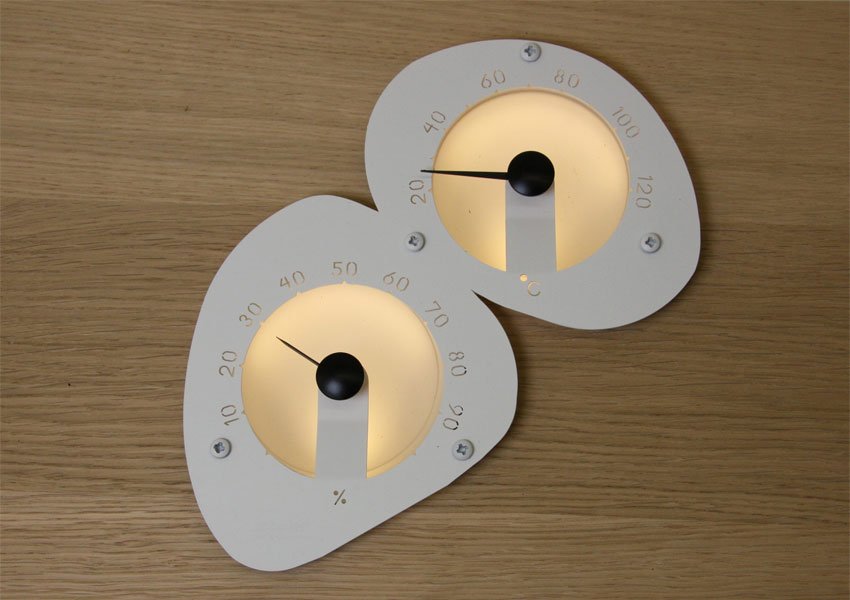 Kivi on yhdistetty lämpö- ja kosteusmittari saunaan. Kiven luonnonmukainen muoto jäljittelee meren rantaan huuhtomia kiviä. Mittari on valmistettu satiinimassalasista sekä hiotusta rst-asteikosta ja se valaistuu kahdella ledillä tai kahdella 2-4 mm kuidulla. Valkoinen.