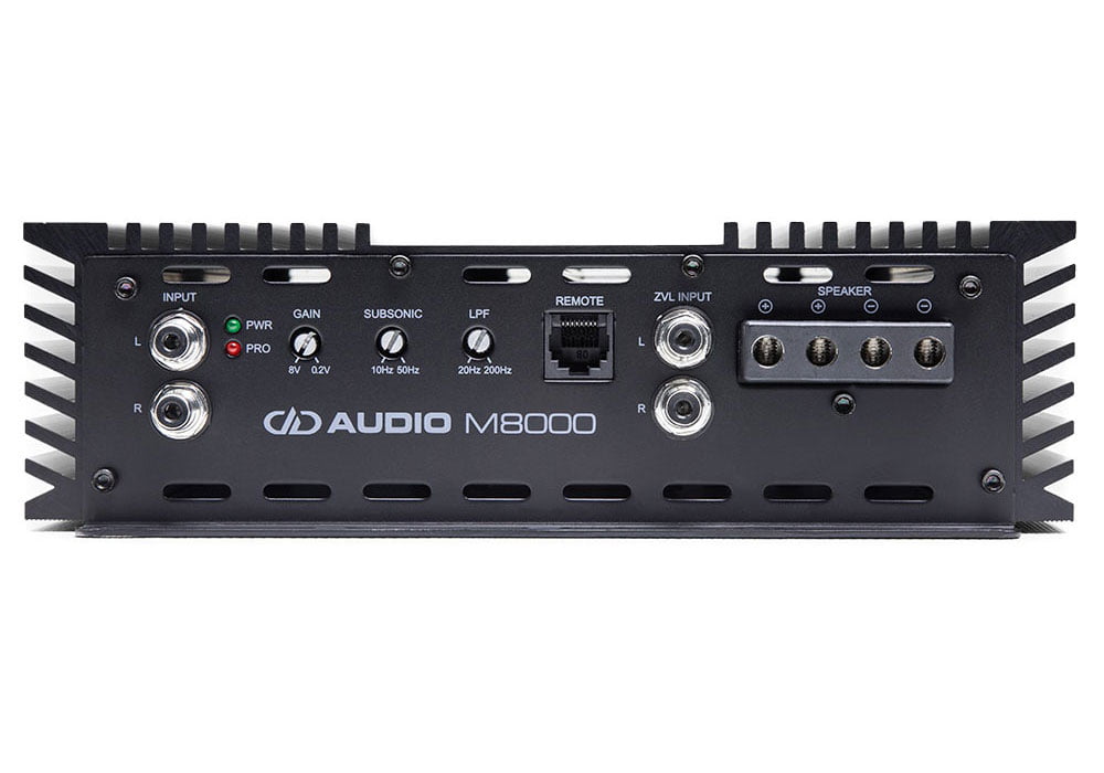DD Audio M8000 on DD Audion ikonisen M-sarjan uusimman sukupolven monovahvistin, joka hyödyntää uusinta puolijohdetekniikkaa ja yhdistää sen uusimpaan vahvistinsuunnitteluun. Vahvistimesta löytyy liitäntä DD Audio ZVL linkkausmoduulille.