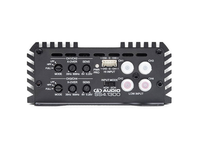 DD Audio SS4.1300-24V on DD Audion SS-sarjan 24V jännitteellä toimiva pienikokoinen mutta todella tehokas 4-kanavainen kokoäänialueen D-luokan vahvistin.