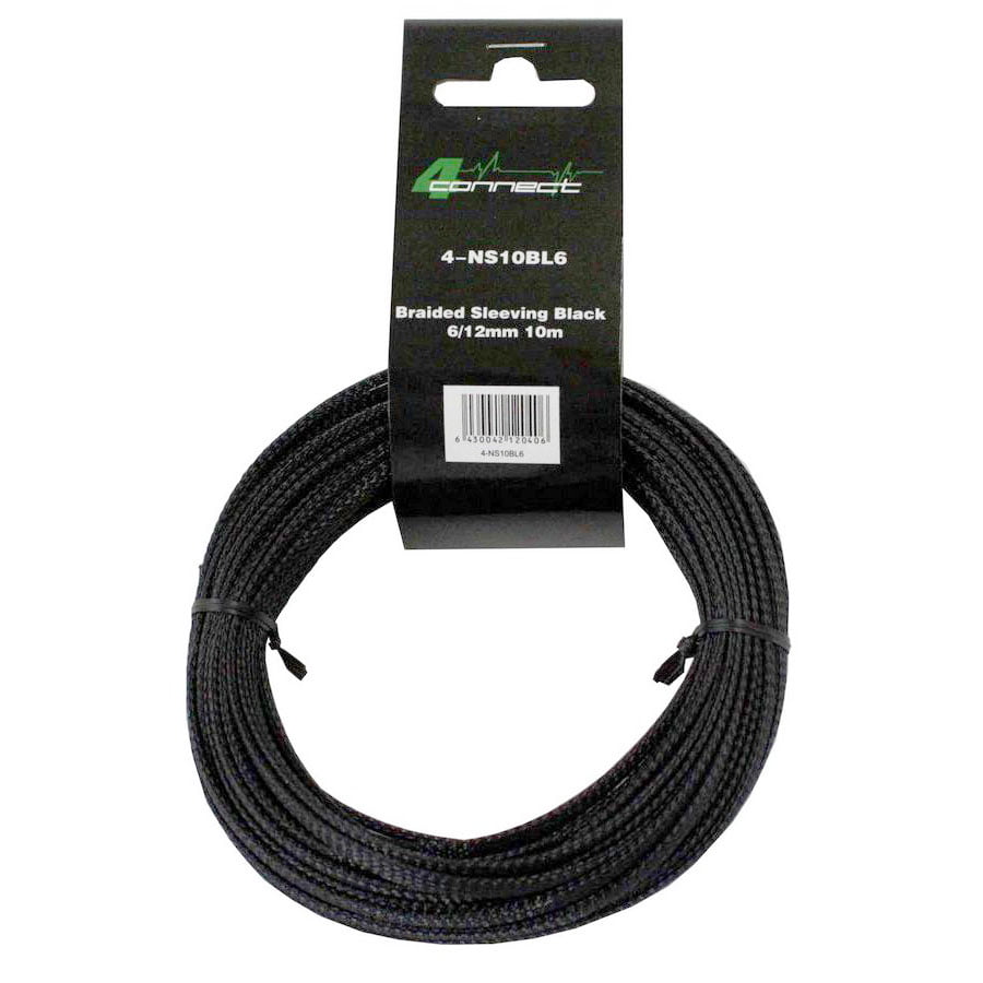 FOUR Connect 4-NS10BL6 on laadukas ja kestävä nylonsuojasukka johtojen suojaukseen ja ehostukseen. Suojasukan halkaisija on 6mm ja se laajenee 12mm asti. Tämä suojasukka soveltuu halkaisijaltaan 4-12mm kaapeleille. Suojasukan maksimi jatkuvan lämpötilan kesto on 125°C ja sulamislämpötila 250°C.