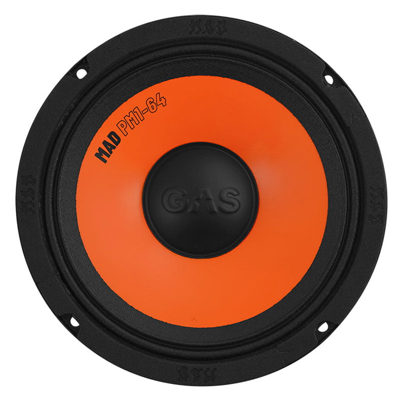 GAS MAD PM1-64 on suositun GAS PSM6 -midbasson korvaaja. Midbassojen herkkyys on 94dB, joten ääntä saadaan paljon pienelläkin vahvistinteholla. Elementin kartio on puristettua paperimassaa, jota on vahvistettu ja elementit ovat luonnollisesti metallirunkoisia. Parihinta.