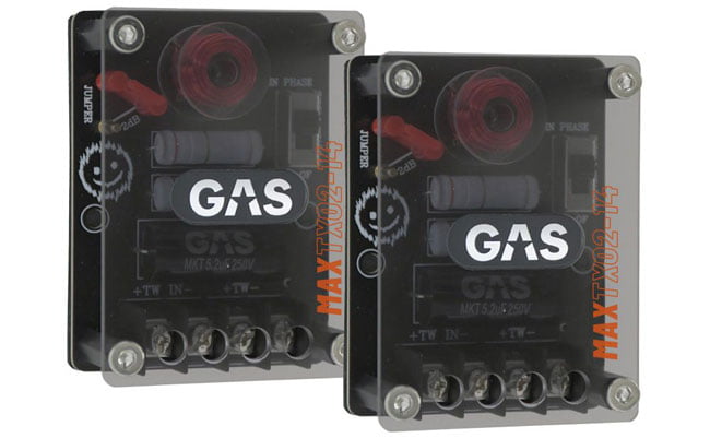GAS MAX K2-64 -erillissarjan asentaminen on helppoa, sillä jokaiselle elementille on oma erittäin laadukkaista komponenteista rakennettu passiivisuodin. Tämä helpottaa asennusta, jos midbassot asennetaan vaikkapa oviin ja diskantit esimerkiksi kojelaudalle tai a-pilareihin. Sekä midbassojen että diskanttien passiivisuotimet ovat kompaktin kokoiset. Asennuspaikasta riippuen, joskus diskanttien vaihe pitää kääntää toisin päin midbassojen vaiheeseen nähden. Diskanttisuotimista löytyy vaiheenkääntö, jolla on helppo testata kumpi asetus toimii autossasi paremmin. Lisäksi diskantin tasoa voidaan tiputtaa kahden desibelin verran suotimessa olevalla jumpperilla.