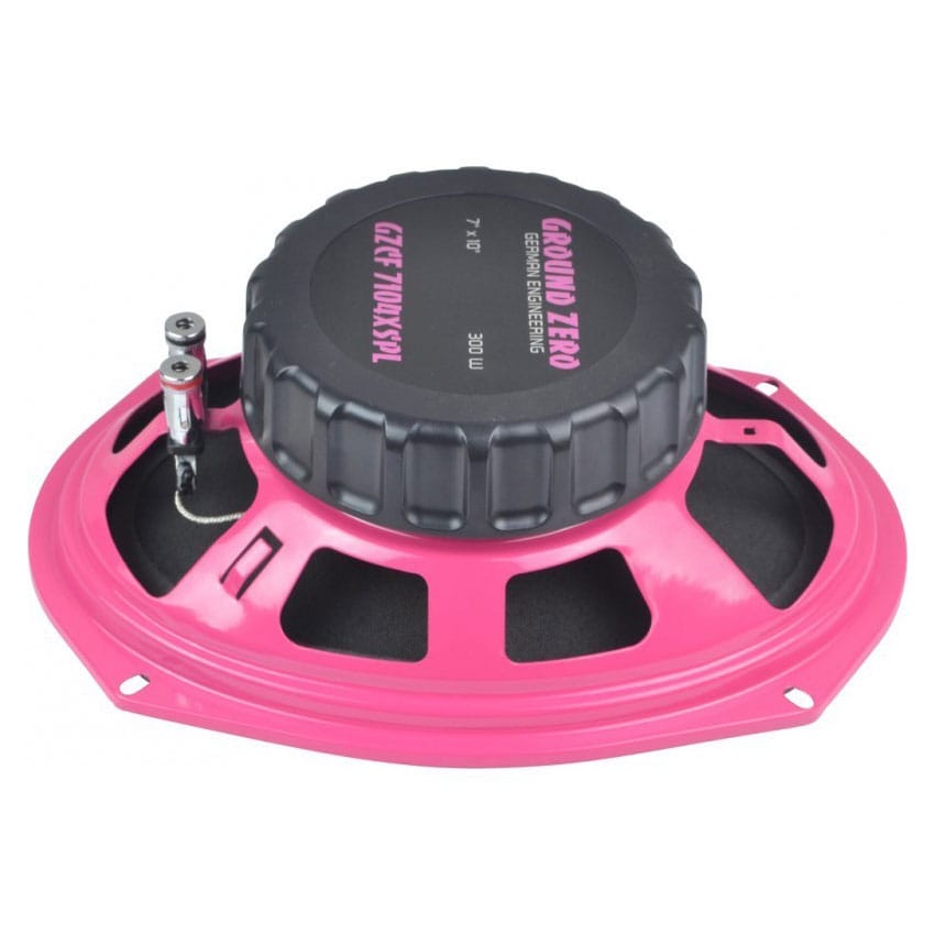 Ground Zero GZCF 7104XSPL Pink on pinkkirunkoinen versio Ground Zero Competition -malliston suositusta todella järeästä 7×10″ 4-tie koaksiaalikaiuttimesta. Kaiuttimien mukana toimitetaan 6×9″ soviterenkaat. Parihinta.