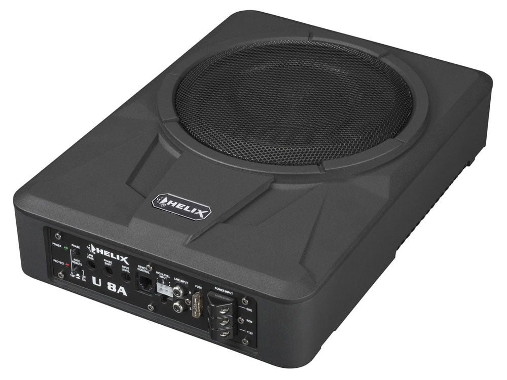 Helix U 8A on todella matala ja pienikokoinen 8″ elementillä varustettu aktiivisubwoofer. Pienen kokonsa vuoksi tämän subbarin voi sijoittaa esimerkiksi apukuskin jalkatilaan (rintapelti), penkin alle, takakonttiin tai hattuhyllylle.