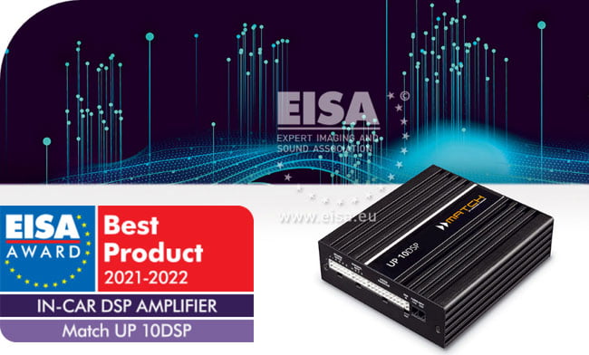 EISA valitsi Match UP 10DSP -mallin parhaaksi autokäyttöön tarkoitetuksi DSP-vahvistimeksi 2021-2022.