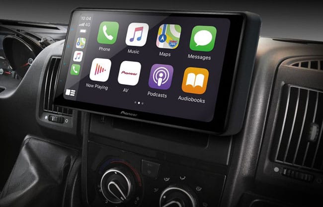 Pioneer SPH-DA93DAB-UNI toimii iPhonen kanssa langattomasti ja voit muun muassa vastaanottaa ja soittaa puheluita, sanella viestit Sirin tai Whatsappin avulla ja käyttää esimerkiksi Google Mapsia, Applen Kartat -sovellusta tai Spotifyn suoratoistoa puhelimen ollessa taskussa. Apple CarPlay toimii myös langallisella yhteydellä kun liität iPhonesi USB-kaapelilla soittimeen. Lisätietoa Apple Carplaysta saat Apple Carplay ohjesivultamme joka aukeaa yllä olevaa kuvaa klikkaamalla.